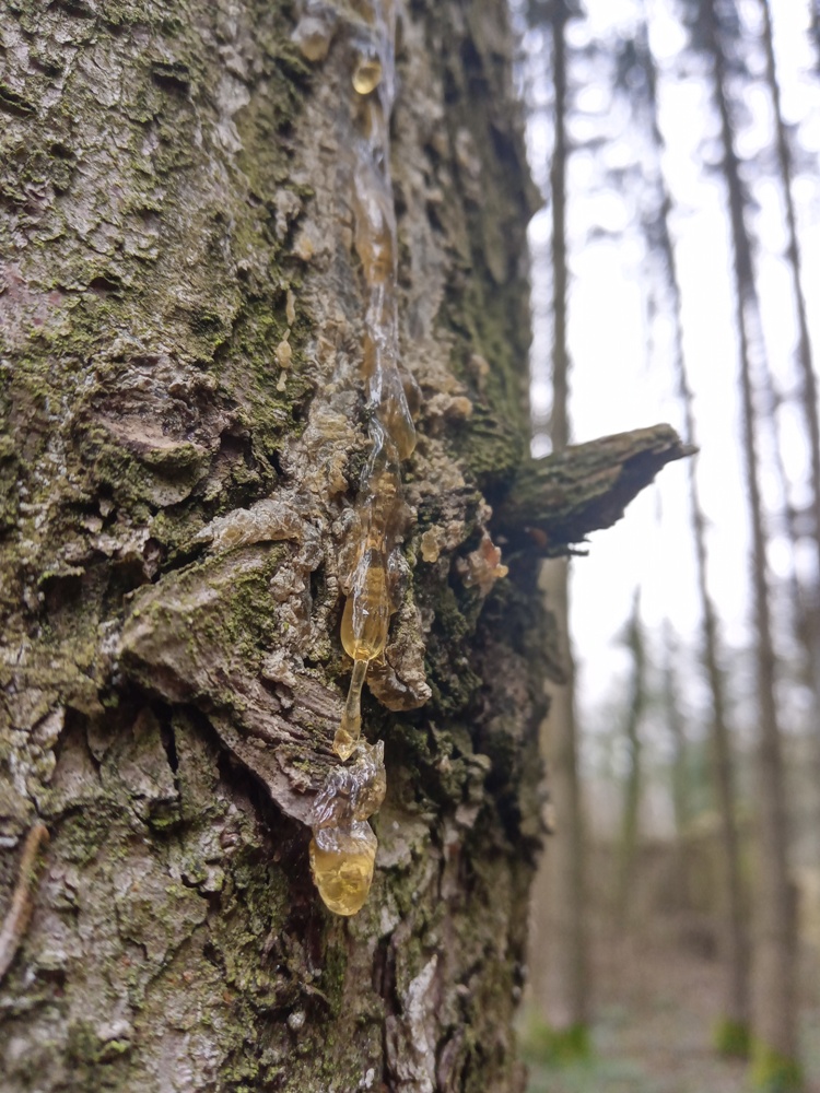 Bei Verletzungen der Rinde und des Holzes schützt sich ein Baum mit einer klebrigen Substanz. Präzise lautet die Bezeichnung nur bei Nadelbäumen Harz, bei Laubbäumen Gummi. Allerdings wird langläufig allgemein von Harz gesprochen. Harz kann viele Bakterien, Viren und Pilze abtöten. Harz hat eine extrem zähflüssige Konsistenz. So schützt sich etwa eine gesunde Fichte vor eindringenden Borkenkäfern, indem sie die Insekten regelrecht mit Harz festklebt. Harz wirkt antiseptisch, entzündungshemmend und wundheilend auch für Menschen und Tiere und gehört somit seit Jahrtausenden zu den wichtigsten Bestandteilen der Naturheilkunde. Insbesondere in „Pechsalben“ oder „Zugsalben“ oder auch getrocknet als Räucherwerk.