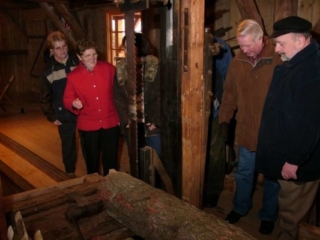 Die Treppe hinauf erreichen Sie die alte einseitige Venezianer Gattersäge, die für den Museumsbetrieb komplett überholt wurde und nach wie vor funktionstüchtig ist. Auf Anfrage demonstrieren wir Ihnen gerne, wie die Säge auch noch heute bis zu 15 m lange Baumstämme in Bretter teilen kann.