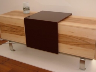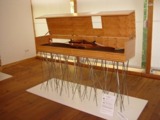 Der dritte Platz ging an Michael Strahlegger, 25, aus Kärnten, der die Idee hatte, einen originellen „Balancatisch“ oder Fußballtisch aus Makkassar, Ahorn und Edelstahl zu fertigen: ein besonders edles Stück mit interessantem Farbenspiel aufgrund der selbst gefertigten Acrylglas-Spielfiguren.